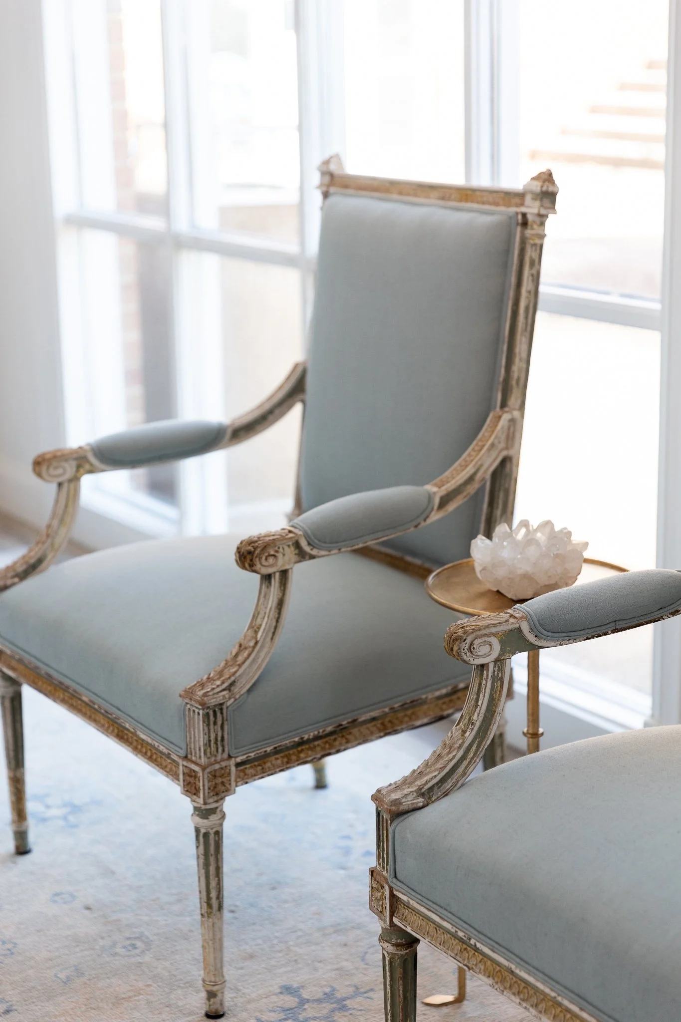 This location is also home to our interior design studio, where we run our full-service interior design projects and collaborate with clients to create thoughtful, beautifully layered spaces. With fabrics, trims, and samples on hand, we can design custom furniture pieces tailored specifically to your home.